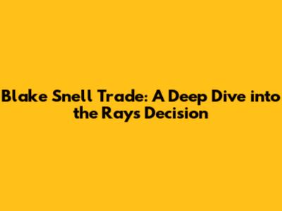 Blake Snell Trade: A Look Back At The Rays' Bold Move