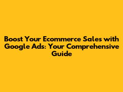 Boost Your Ecommerce Sales With Google Ads