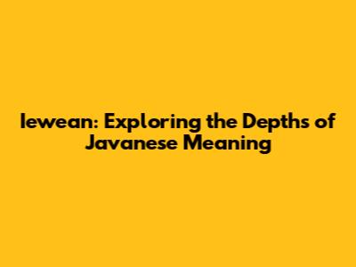 Iewean: Unveiling The Meaning In Javanese Language