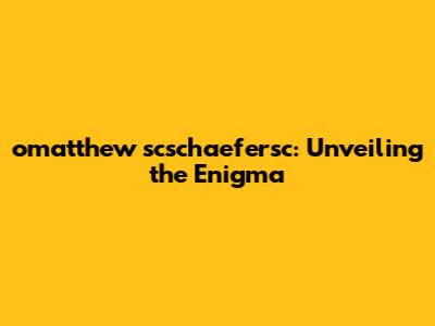 Omatthew Scschaefersc: Unveiling The Enigma