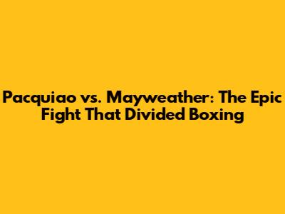 Pacquiao Vs. Mayweather: The Epic Fight That Divided Boxing