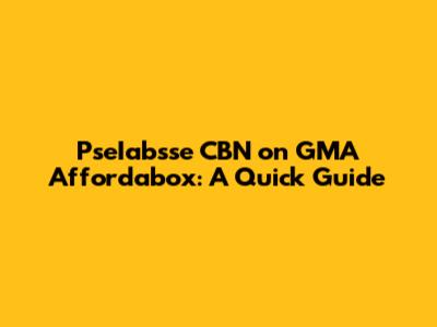 PseIabsse CBN On GMA Affordabox: A Quick Guide