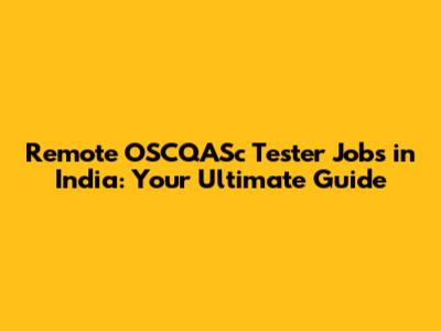 Remote OSCQASc Tester Jobs In India: Your Guide