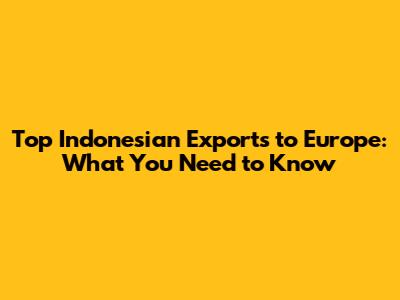 Top Indonesian Exports To Europe: What You Need To Know