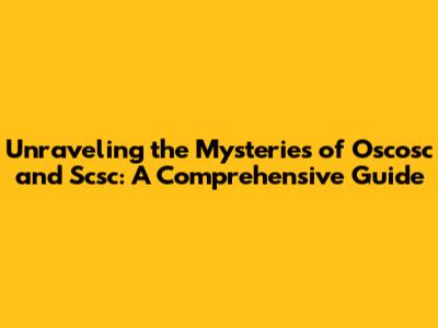 Unraveling The Mysteries Of Oscosc And Scsc: A Comprehensive Guide