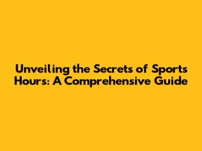 Unveiling The Secrets Of Sports Hours: A Comprehensive Guide